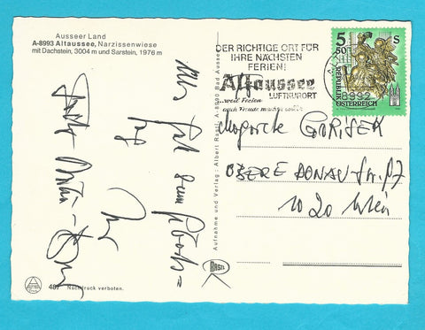 AK Ausseer Land. Altaussee, Narzissenwiese. Gelaufen. Großformat. Verlag: Rastl. Nummeriert: 487. Zustand: gut,Knick am unteren Rand in der rechten Hälfte.