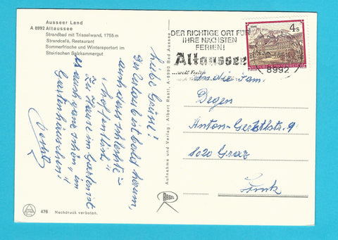AK Ausseer Land. Altaussee. Strandbad mit Trisselwand. Gelaufen. Großformat. Verlag: Rastl. Nummeriert: 476. Zustand: gut.