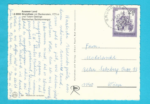 AK Ausseer Land. Grundlsee. Gelaufen. Großformat. Verlag: Rastl. Nummeriert: 581. Zustand: gut, leichte Läsuren.