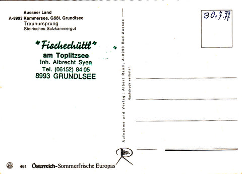 AK Ausseer Land. Kammersee, Gößl, Grundlsee. Traunursprung. Ungelaufen. Großformat. Verlag: Rastl. Nummeriert: 461. Zustand: gut.