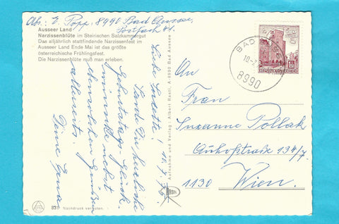 AK Ausseer Land. Narzissenblüte im Steirischen Salzkammergut. Gelaufen. Großformat. Verlag: Rastl. Nummeriert: 831. Zustand: Ecken geknickt bzw. angeknickt.