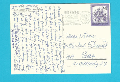 AK Bad Aussee. Gelaufen. Großformat. Verlag: Risch-Lau. Nummeriert: SD 10089. Zustand: linkes oberes Eck geknickt und dort am linken Rand leichter Fleck, rechtes unteres Eck angeknickt.