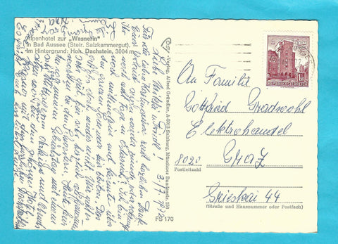 AK Bad Aussee. Alpenhotel zur Wasnerin. Gelaufen. Großformat. Verlag: Cosy. Nummeriert: FS 170. Zustand: gut, linke Ecken leicht angestoßen.