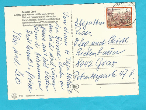 AK Bad Aussee. Ausseer Land. Gelaufen. Großformat. Verlag: Rastl. Nummeriert: 412. Zustand: Ecken geknickt bzw. angeknickt, am linken Rand in der Mitte bestoßen bzw. geknickt.