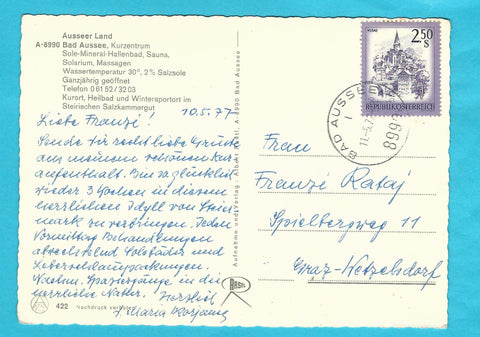AK Bad Aussee. Ausseer Land. Kurzentrum. Gelaufen. Großformat. Verlag: Rastl. Nummeriert: 422. Zustand: Ecken geknickt, leichte Kratzer.