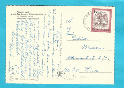 AK Bad Aussee. Ausseer Land. St. Leonhard-Kirche. Gelaufen. Großformat. Verlag: Rastl. Nummeriert: 826. Zustand: Ecken angeknickt bzw. leicht geknickt.