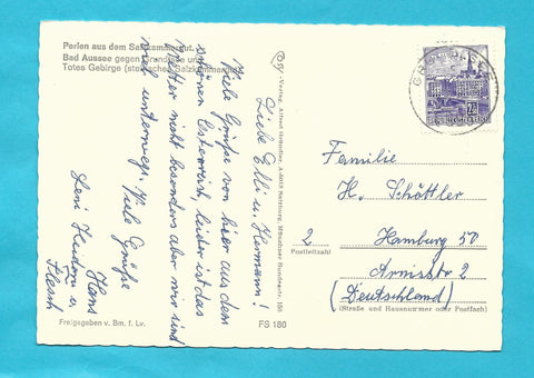 AK Bad Aussee gegen Grundlsee und Totes Gebirge. Gelaufen. Großformat. Verlag: Cosy. Nummeriert: FS 180. Zustand: rechtes unteres Eck angeknickt, etwas zerkratzt.