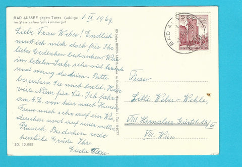 AK Bad Aussee gegen Totes Gebirge. Gelaufen. Großformat. Verlag: Risch-Lau. Nummeriert: SD 10088. Zustand: rechtes oberes Eck leicht geknickt, andere Ecken wenig angeknickt.