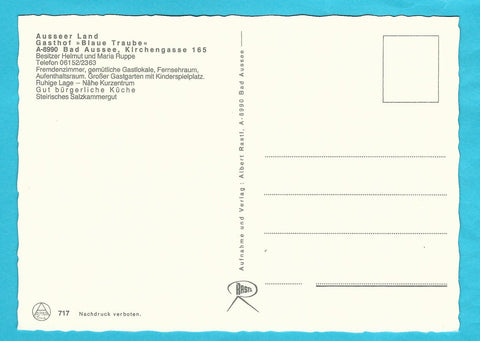 AK Bad Aussee. Kirchengasse 165. Gasthof Blaue Traube. Ungelaufen. Großformat. Verlag: Rastl. Nummeriert: 717. Zustand:gut.