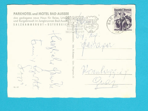 AK Bad Aussee. Parkhotel und Motel. Gelaufen. Großformat. Verlag: Westmüller. Nummeriert: 47 Zustand: Oberfläche knittrig.