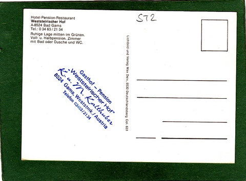 AK Bad Gams. Weststeirischer Hof. Ungelaufen. Großformat. Hüttenstempel. Verlag: Deix. Nummeriert: 631. Zustand: gut, links oben leicht fleckig.