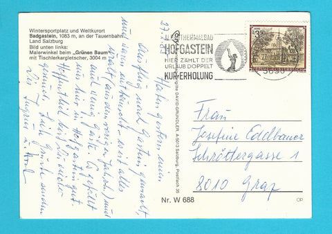 AK Badgastein. Gelaufen. Großformat. Verlag: Cosy. Nummeriert: 688. Zustand: gut, linkes oberes Eck geknickt.