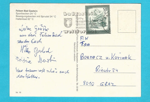 AK Bad Gastein. Felsenbad. Gelaufen, eine Briefmarke wurde entfernt. Großformat. Verlag: Wolfsbauer. Nummeriert: 19. Zustand: gut.