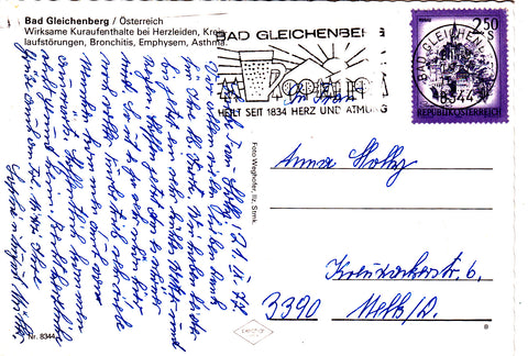 AK Bad Gleichenberg. Gelaufen. Großformat. Verlag: Weghofer. Nummeriert: 8344. Zustand: gut, linkes oberes und rechtes unteres Eck angeknickt.