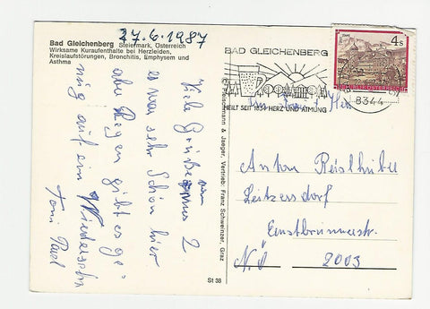 AK Bad Gleichenberg. Gelaufen. Großformat. Verlag: Fleischmann & Jäger.. Nummeriert: St 38. Zustand: Knick am oberen Rand in der Mitte, sonst leichte Läsuren.