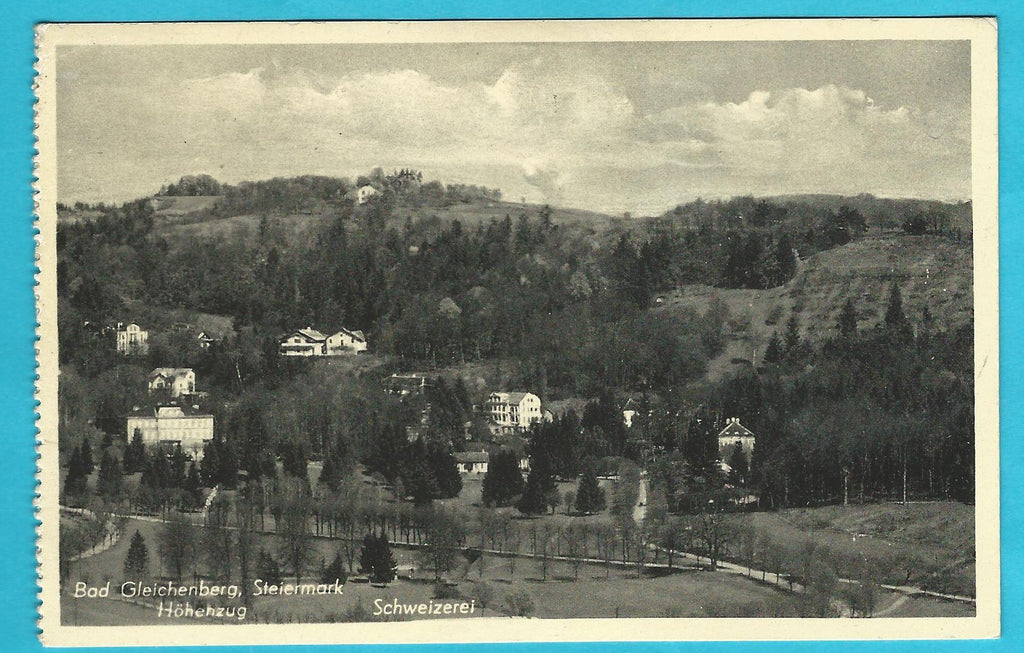 AK Bad Gleichenberg. (1938) Gelaufen, aber Briefmarke wurde entfernt. Kleinformat. Verlag: PLW. Nummeriert: 35198. Zustand: stärker bestoßen.