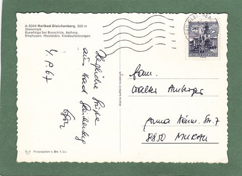 AK Bad Gleichenberg. Gelaufen 1967 in Bad Gleichenberg. Großformat. Verlag: Alpine Luftbild Innsbruck. Zustand: Ecken geknickt bzw. angeknickt.