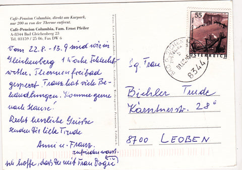 AK Bad Gleichenberg 23. Cafe-Pension Columbia, Fam. Ernst Pfeiler. Gelaufen. Großformat. Verlag: Lammerhuber. Zustand: Oberfläche etwas abgegriffen, sonst O.k.