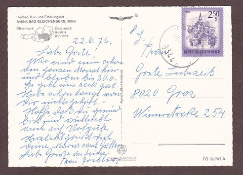 AK Bad Gleichenberg. Gelaufen 1976. Großformat. Verlag: Alpine Luftbild. Nummeriert: FÖ 50747 A. Zustand: obere Ecken angeknickt, leichte Knicke.