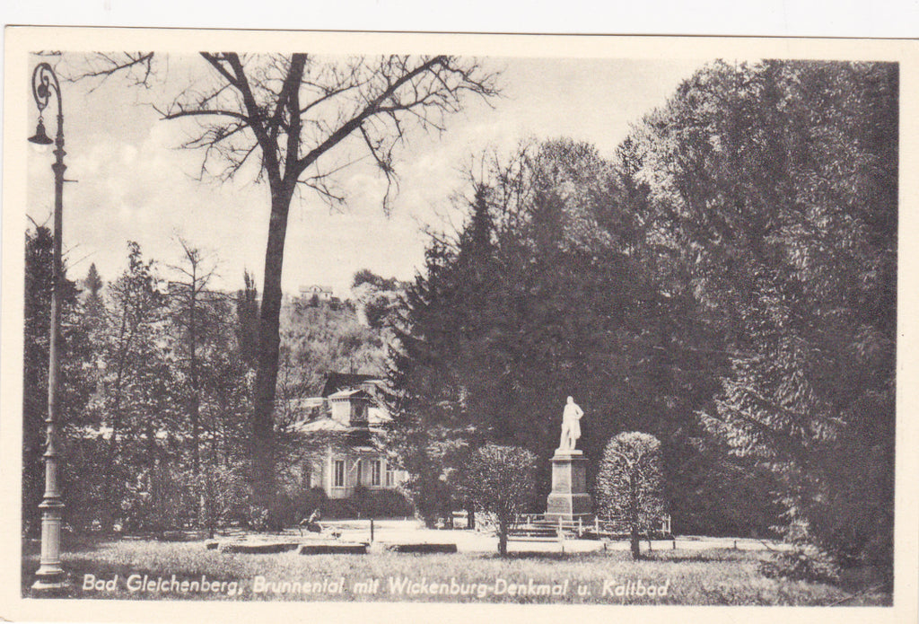 AK Bad Gleichenberg. Brunnental mit Wickenburg-Denkmal u. Kaltbad. (1948-49) Ungelaufen. Kleinformat. Verlag: Frank. Nummeriert: 2562-40. Zustand: gut.
