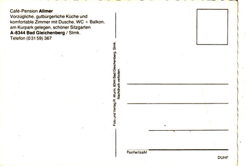 AK Bad Gleichenberg. Cafe Pension Allmer.  Ungelaufen. Großformat. Verlag: Wurm. Zustand: gut.