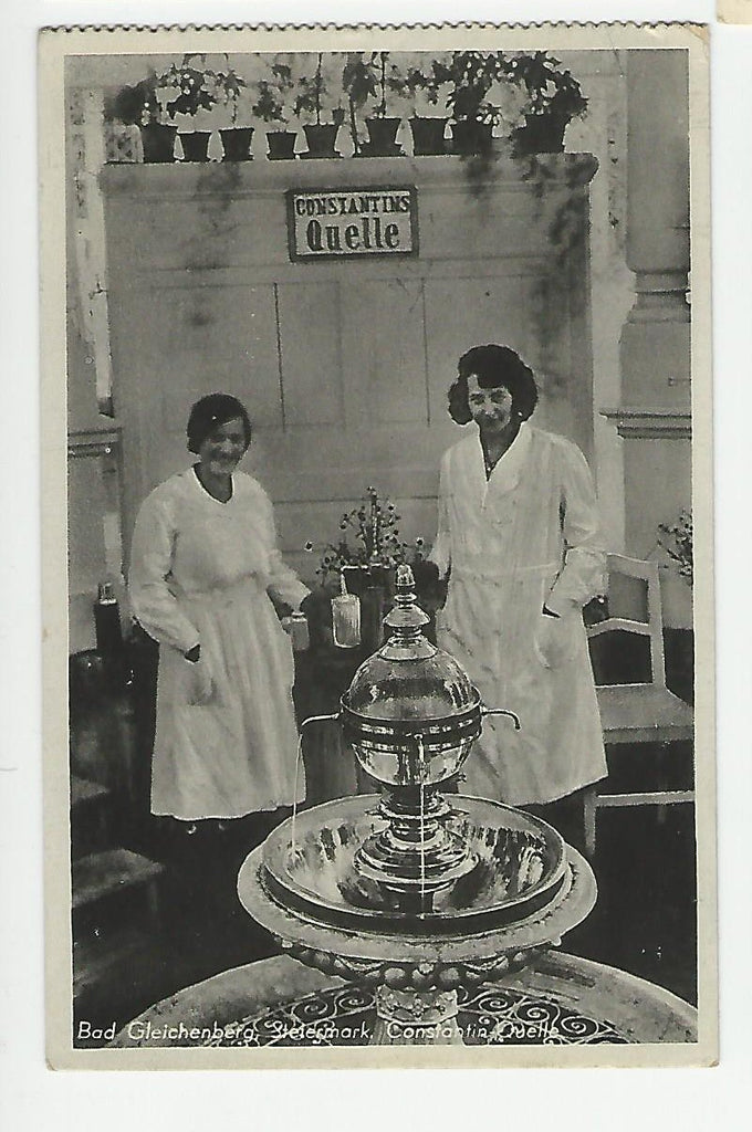 AK Bad Gleichenberg. Constantin-Quelle. (1936) Gelaufen. Kleinformat. Verlag: Kienreich. Nummeriert: 31584. Zustand: gut, rechtes oberes Eck etwas angestoßen.