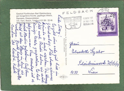 AK Bad Gleichenberg. Gasthof Fünfkirchen. Inh. Fam. Resch. Gelaufen in Feldbach. Großformat. Verlag: R. Wurm. Nummeriert: 25. Zustand: gut, rechtes unteres Eck angeknickt.