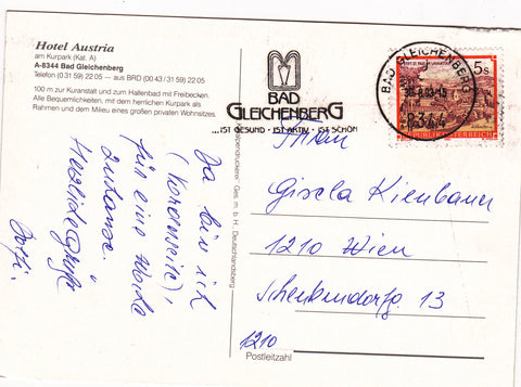 AK Bad Gleichenberg. Hotel Austria am Kurpark. Gelaufen. Großformat. Verlag: Koralpendruckerei. Zustand: linkes unteres Eck berieben, Kugelschreiberkreuz beim rechten Rand in der Mitte.