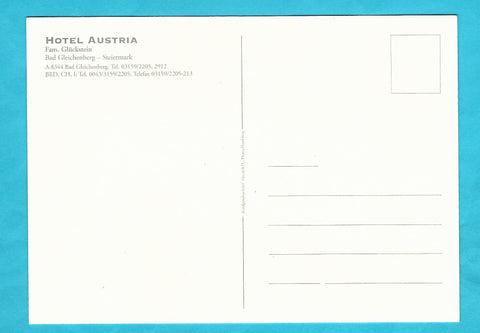 AK Bad Gleichenberg. Hotel Austria. Fam. Glückstein. Ungelaufen. Großformat. Verlag: Koralpendruckerei. Zustand: gut, leichte Läsuren, Kugelschreiberkreuz ca. in Bildmitte.