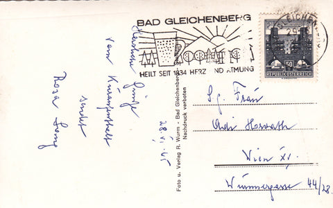 AK Bad Gleichenberg. Kurheim der Pens. Vers. Anstalt der Angestellten. Gelaufen 1965. Kleinformat. Verlag: Wurm. Zustand: gut, rechtes unteres Eck leicht geknickt.