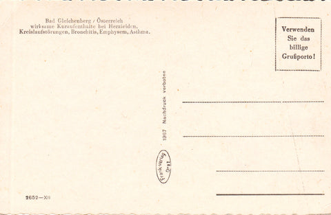 AK Bad Gleichenberg. Kurheime Styria. (1967) Ungelaufen. Kleinformat. Verlag: Frank. Nummeriert: 2652-XII. Zustand: rechtes oberes und linkes unteres Eck angeknickt, Kugelschreiberkreuz am rechten unteren Bild, sonst O.k.