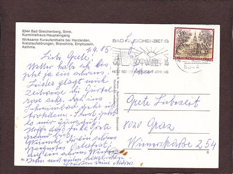 AK Bad Gleichenberg. Kurmittelhaus Haupteingang. Gelaufen 1985. Großformat. Verlag: Wurm. Nummeriert: 3. Zustand: linkes oberes und rechtes unteres Eck geknickt.