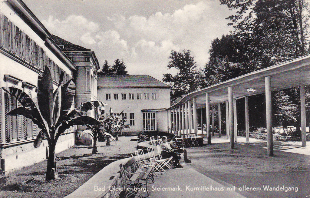 AK Bad Gleichenberg. Kurmittelhaus mit offenem Wandelgang. (1960-61) Gelaufen. Kleinformat. Verlag: Frank. Nummeriert: 2562-185. Zustand: stärker bestoßen.