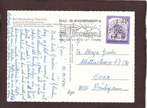 AK Bad Gleichenberg. Kurpark mit Wickenburgdenkmal. Gelaufen 1976. Großformat. Verlag: Wurm. Nummeriert: 17. Zustand: Ecken wenig angeknickt.