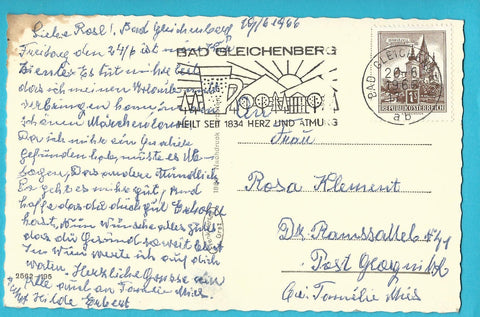 AK Bad Gleichenberg. Kurpark-Motiv mit Kurmittelhaus. (1964) Gelaufen. Kleinformat. Verlag: Frank. Nummeriert: 2562-195. Zustand: gut, leichte Läsuren.