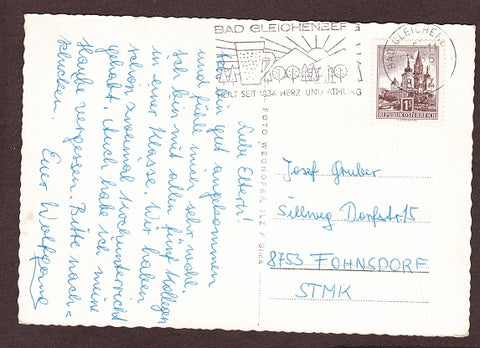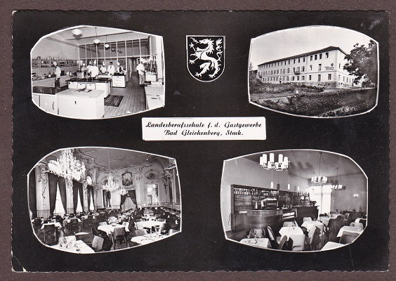 AK Bad Gleichenberg. Landesberufsschule f. d. Gastgewerbe. Gelaufen 1966. Großformat. Verlag: Weghofer. Zustand: linkes unteres Eck geknickt, sonst leichte Läsuren.