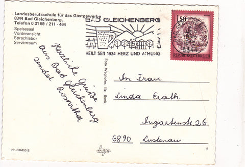 AK Bad Gleichenberg. Landesberufsschule für das Gastgewerbe. Gelaufen. Großformat. Verlag: Weghofer. Nummeriert: 834455 B. Zustand: gut, leichte Randläsuren.