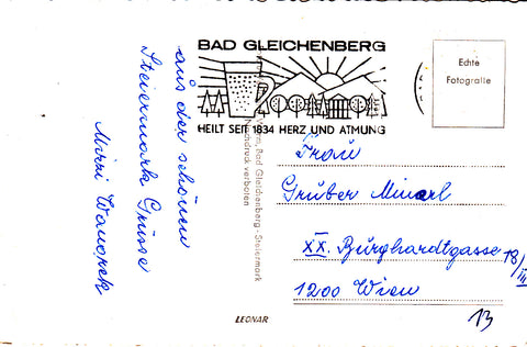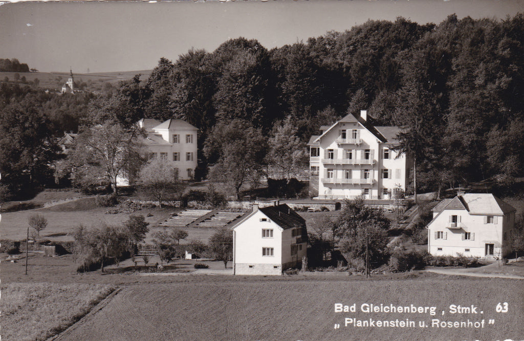 AK Bad Gleichenberg. Plankenstein u. Rosenhof. Gelaufen, aber Briefmarke wurde entfernt. Keinformat. Verlag: Wurm. Nummeriert: 63. Zustand: gut.