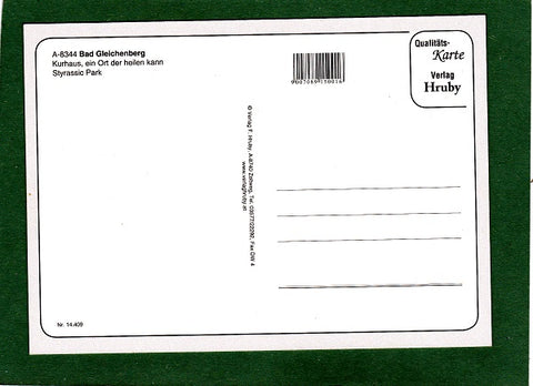 AK Bad Gleichenberg. Styrassic Park. Ungelaufen. Großformat. Verlag: Hruby. Nummeriert: 14409. Zustand: gut, leichte Läsuren.