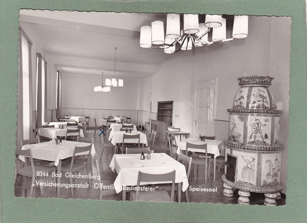 AK Bad Gleichenberg. Versicherungsanstalt Öffentlich Bediensteter. Speisesaal. Gelaufen 1970 in Bad Gleichenberg. Großformat. Verlag: Weghofer. Zustand: gut, in linker unterer Hälfte Kugelschreiberkreuz.