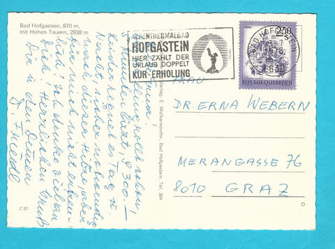 AK Bad Hofgastein. Gelaufen. Großformat. Verlag: Wolkersdorfer. Nummeriert: C 87. Zustand: gut, leichte Läsuren.