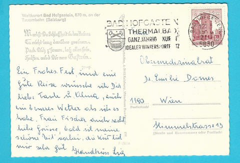 AK Bad Hofgastein. Gelaufen. Großformat. Verlag: Cosy. Nummeriert: F 1527a. Zustand: gut, linkes unteres Eck angeknickt.