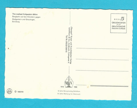 AK Bad Hofgastein. Bergbahn auf den Kitzstein. Ungelaufen. Großformat. Verlag: Monopol. Nummeriert: O 166018. Zustand: gut, Knick am oberen Rand.