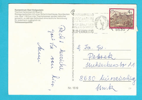 AK Bad Hofgastein. Alpenthermalbad. Gelaufen. Großformat. Verlag: Cosy. Nummeriert: 1519. Zustand: obere Ecken geknickt.