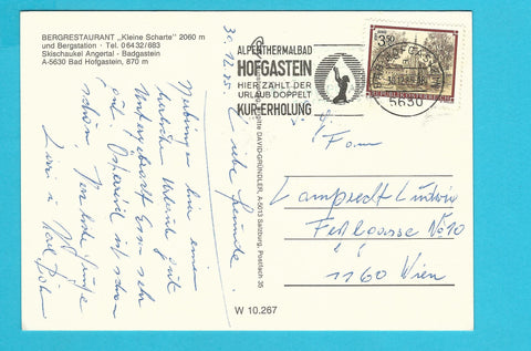 AK Bad Hofgastein. Bergrestaurant Kleine Scharte. Gelaufen. Großformat. Verlag: Cosy. Nummeriert: W 10267. Zustand: Knick über der unteren Bildhälfte.