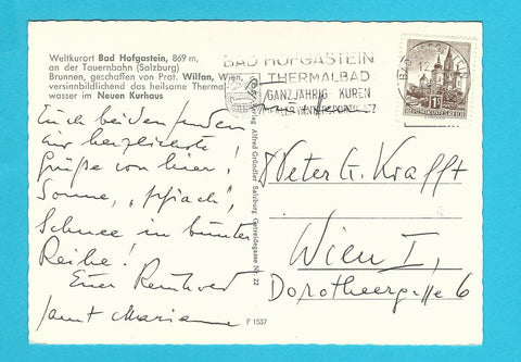 AK Bad Hofgastein. Brunnen im Kurhaus. Gelaufen. Großformat. Verlag: Cosy. Nummeriert: F 1537. Zustand: leicht knittrig.