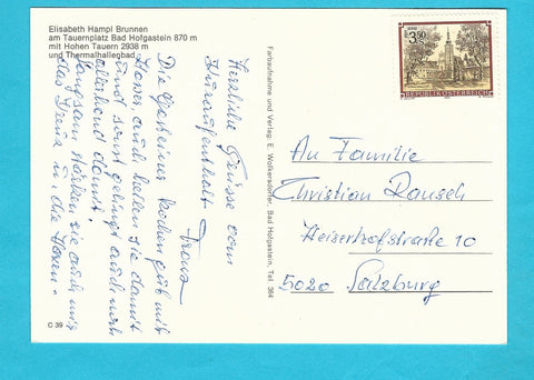 AK Bad Hofgastein. Elisabeth Hampl Brunnen. Gelaufen. Großformat. Verlag: Wolkersdorfer. Nummeriert: C 39. Zustand: rechtes oberes Eck geknickt, sonst O.k.