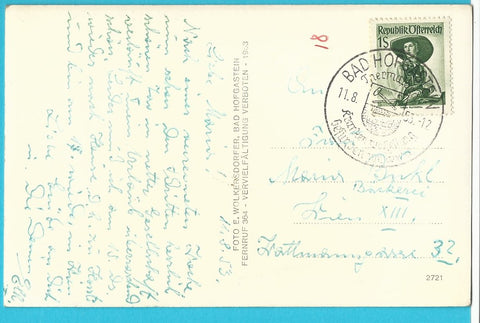 AK Bad Hofgastein. Höhenweg. (1953) Gelaufen. Kleinformat. Verlag: Wolkersdorfer. Nummeriert: 129. Zustand: gut, leicht bestoßen.