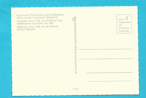 AK Bad Hofgastein. Inneres der Pfarrkirche. Ungelaufen. Großformat. Verlag: Cosy. Nummeriert: F 1513. Zustand: Knick über dem rechten oberen Eck.