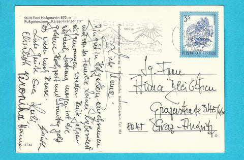 AK Bad Hofgastein. Kaiser-Franz-Platz. Gelaufen. Großformat. Verlag: Wolkersdorfer. Nummeriert: C 43. Zustand: gut, linkes oberes Eck angeknickt.